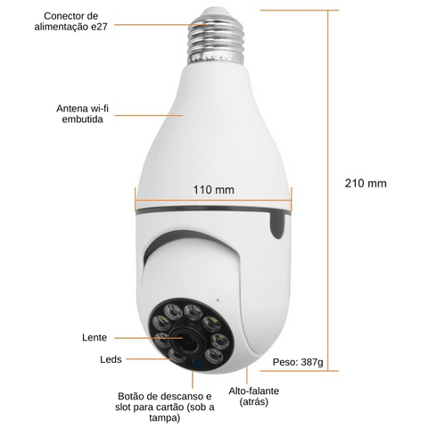 ✔️ A Câmera Waterproof© 2.0 pode ser instalada usando uma base de lâmpada E27 normal (110V~240V). Basta encaixar a câmera no local que deseja , e configura-la no aplicativo .